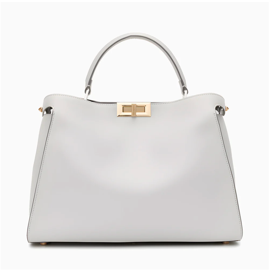 A study in modern refinement, the Colette Structured Tote Bag is crafted in smooth genuine leather and designed to elevate your daily rhythm. Its sleek lines and softly contoured frame balance structure with softness, while the top handle and detachable strap offer styling versatility. A polished clasp adds a touch of architectural detail. Compact yet spacious, it holds essentials with quiet confidence. From desk to dinner, this tote is an effortless wardrobe signature.