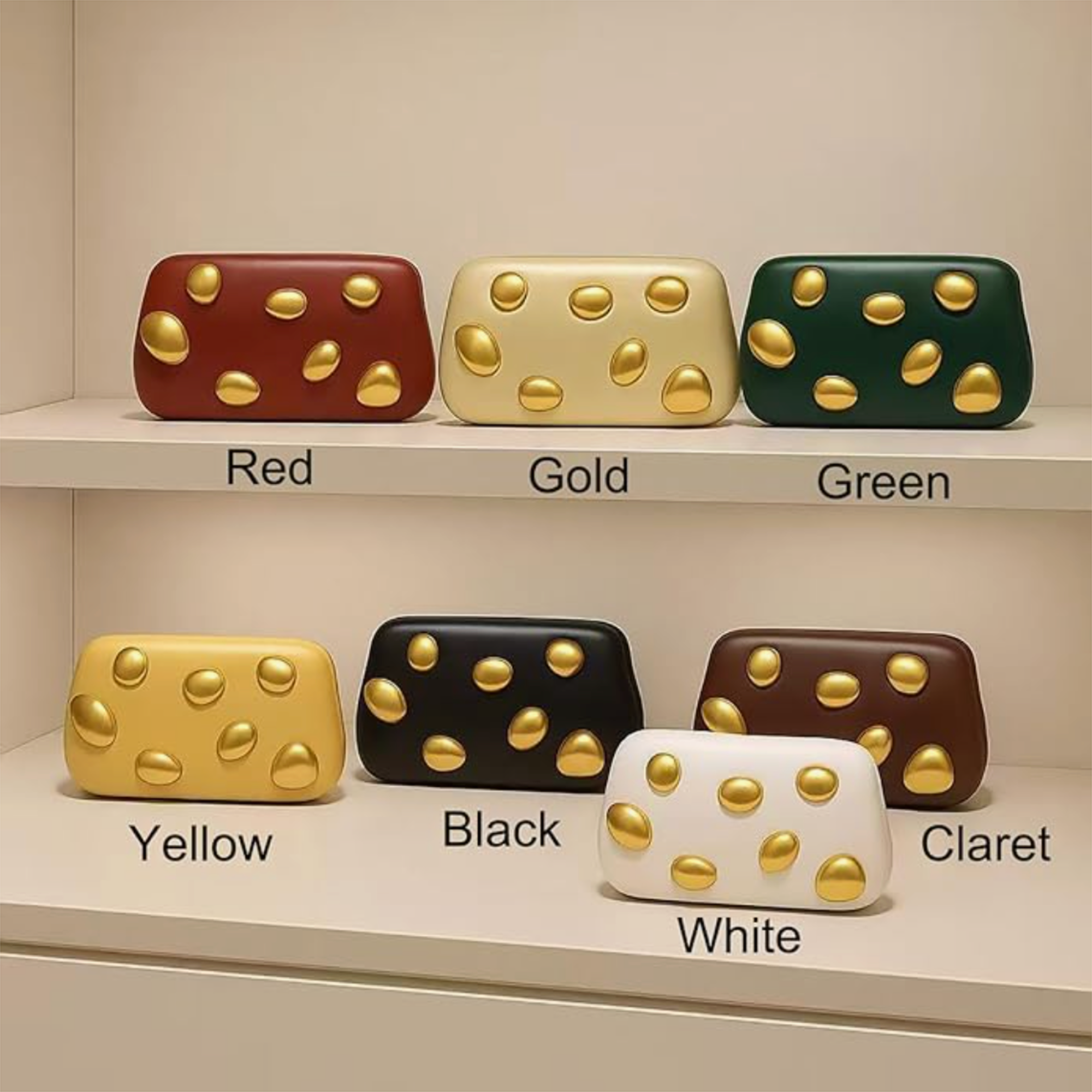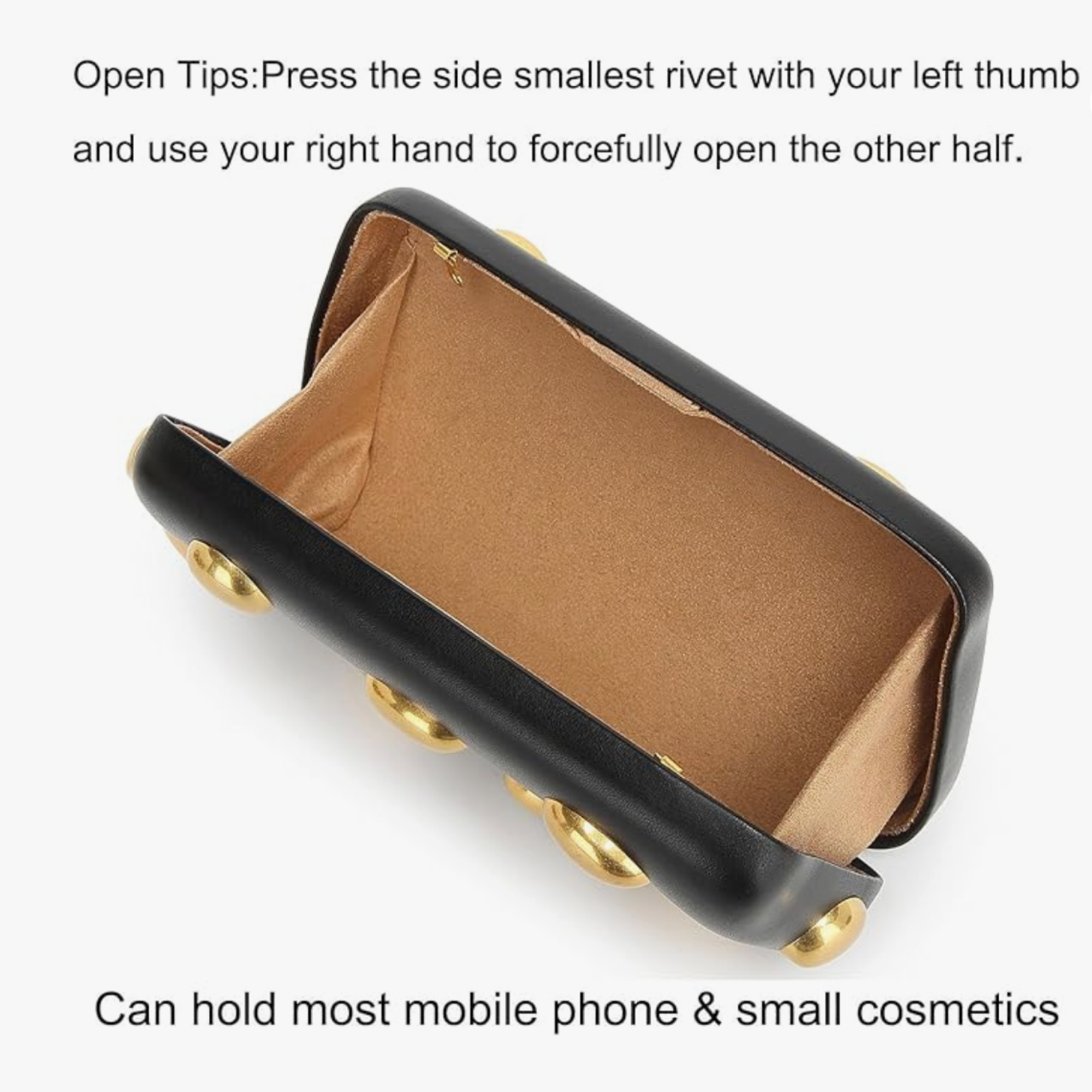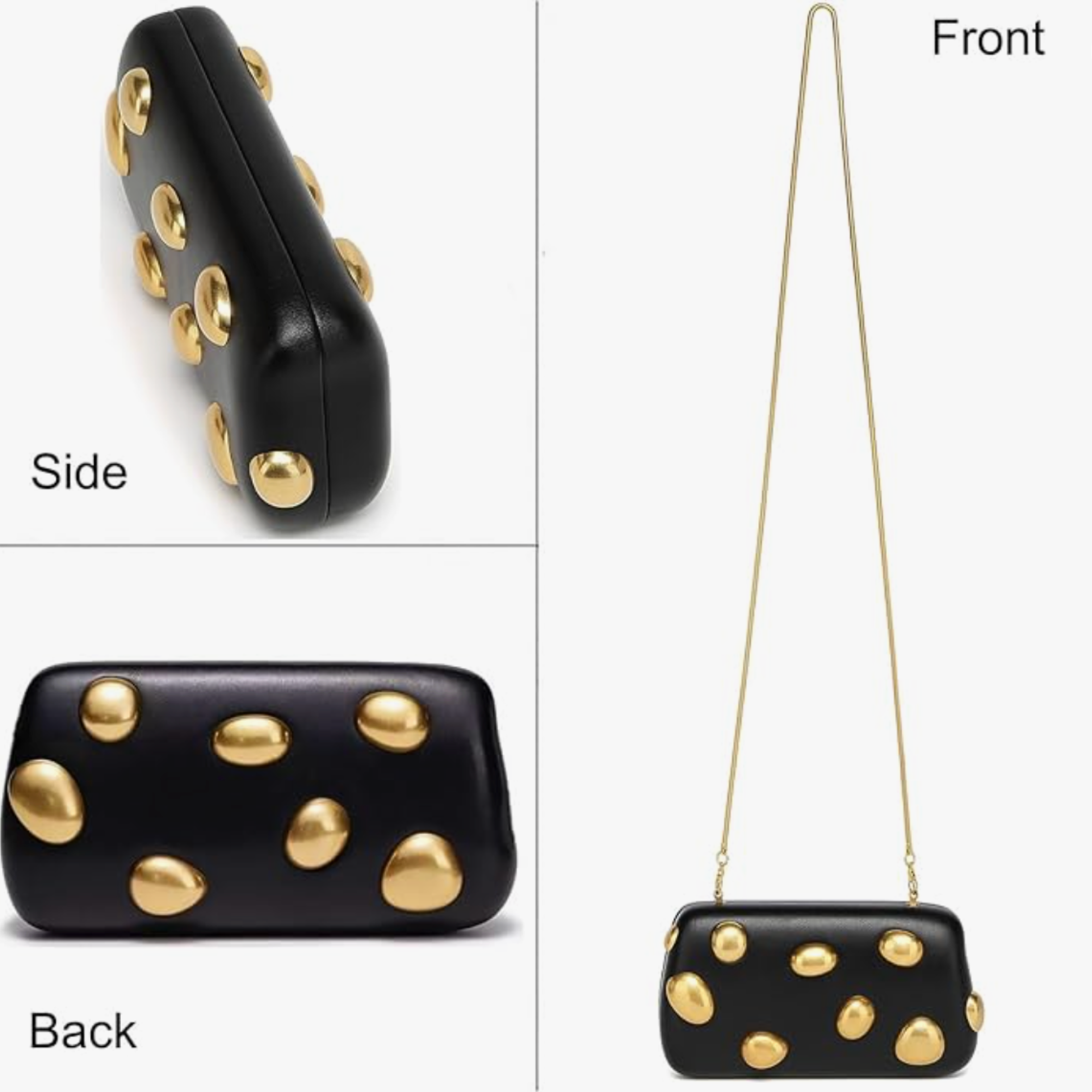 Feature: Unique double sided rivet design design makes it not only bag for dating, leisure, evening, vacation, party, banquet, gathering, wedding, formal occasion, but also gift for holidays and birthdays