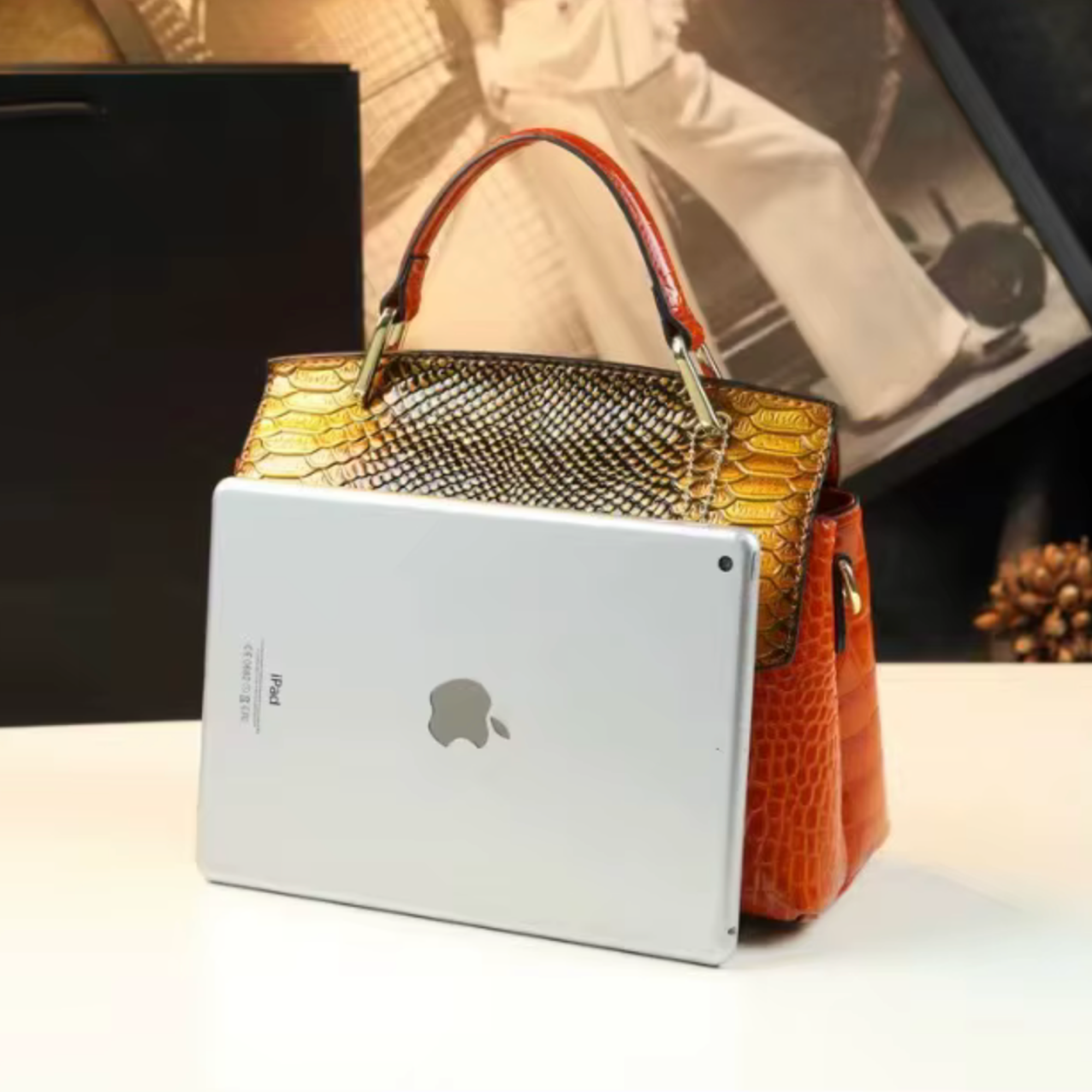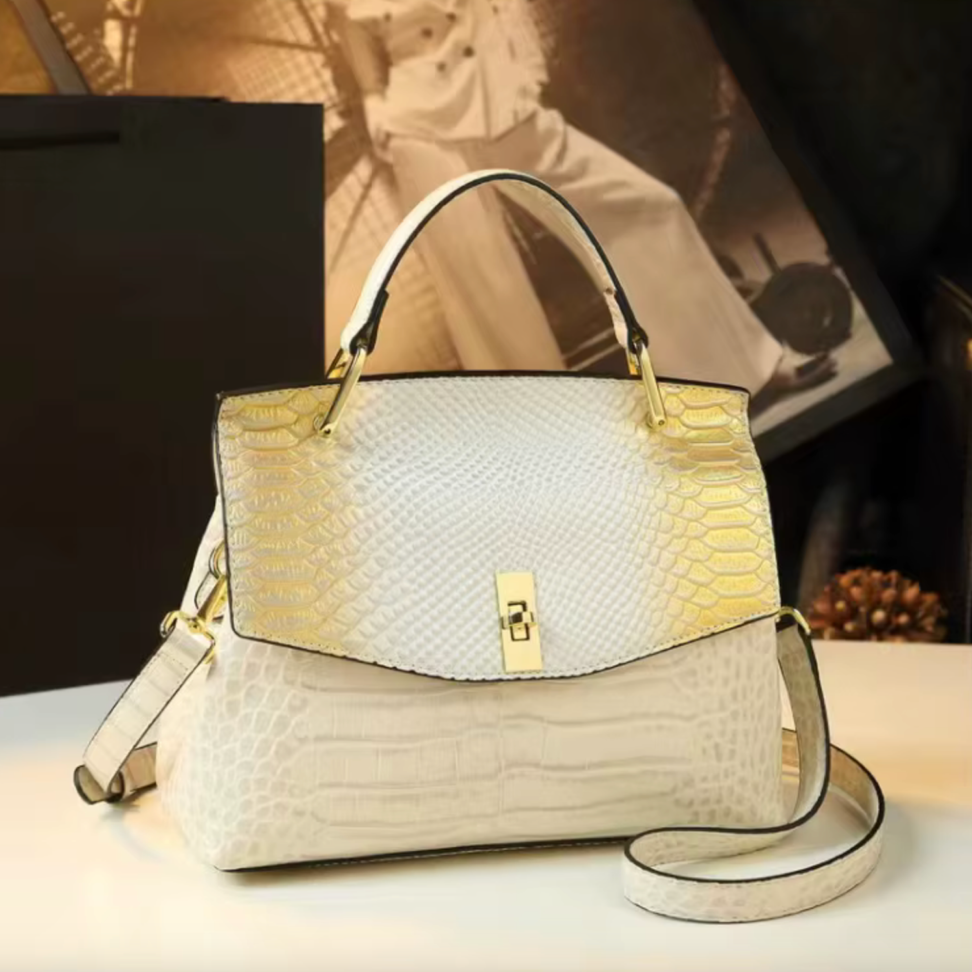 Elevate your style with the timeless elegance of the Isabella Shoulder Bag, featuring a sophisticated crocodile-embossed texture that effortlessly complements any wardrobe. This structured piece showcases gleaming gold-tone hardware and an elegant turn-lock closure, crafted from premium vegan leather for the conscious fashion lover. The spacious interior and versatile top handle design make it perfect for transitioning seamlessly from boardroom meetings to evening soirées. Whether paired with tailored workwear or casual weekend pieces, this bag serves as the perfect statement accessory that speaks to discerning taste and modern sensibility.