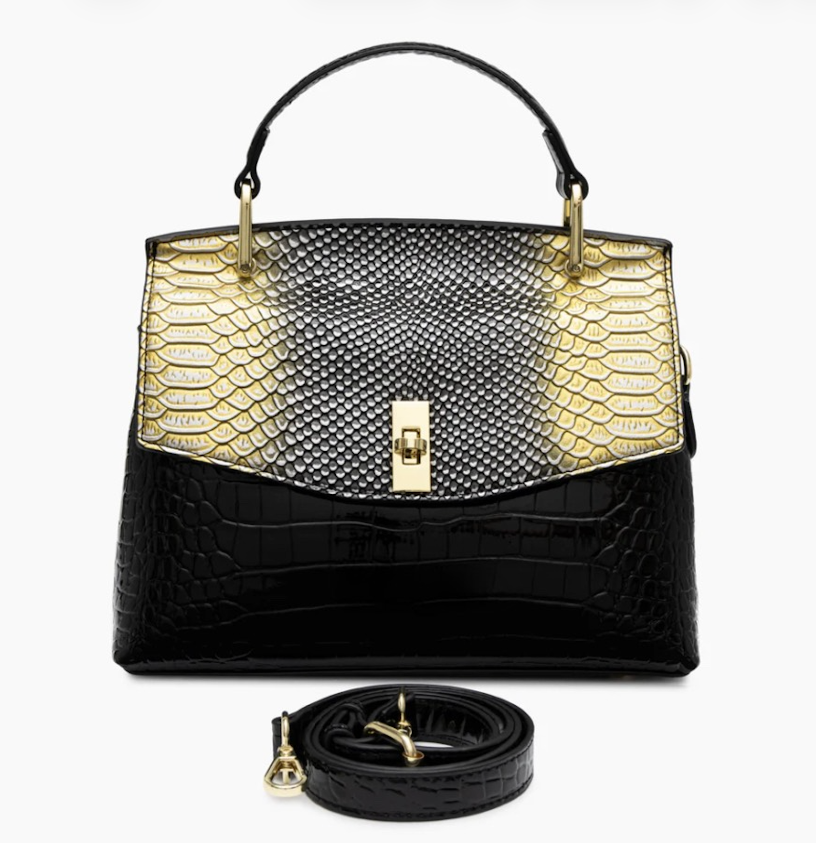 Elevate your style with the timeless elegance of the Isabella Shoulder Bag, featuring a sophisticated crocodile-embossed texture that effortlessly complements any wardrobe. This structured piece showcases gleaming gold-tone hardware and an elegant turn-lock closure, crafted from premium vegan leather for the conscious fashion lover. The spacious interior and versatile top handle design make it perfect for transitioning seamlessly from boardroom meetings to evening soirées. Whether paired with tailored workwear or casual weekend pieces, this bag serves as the perfect statement accessory that speaks to discerning taste and modern sensibility.