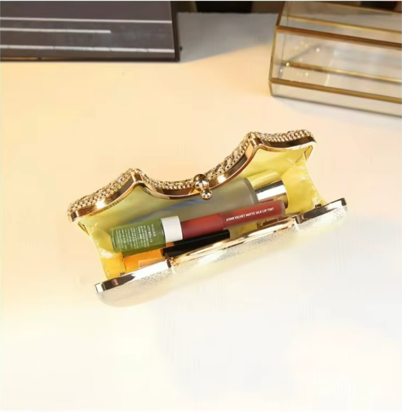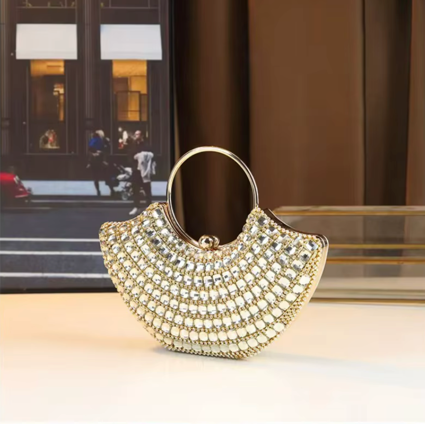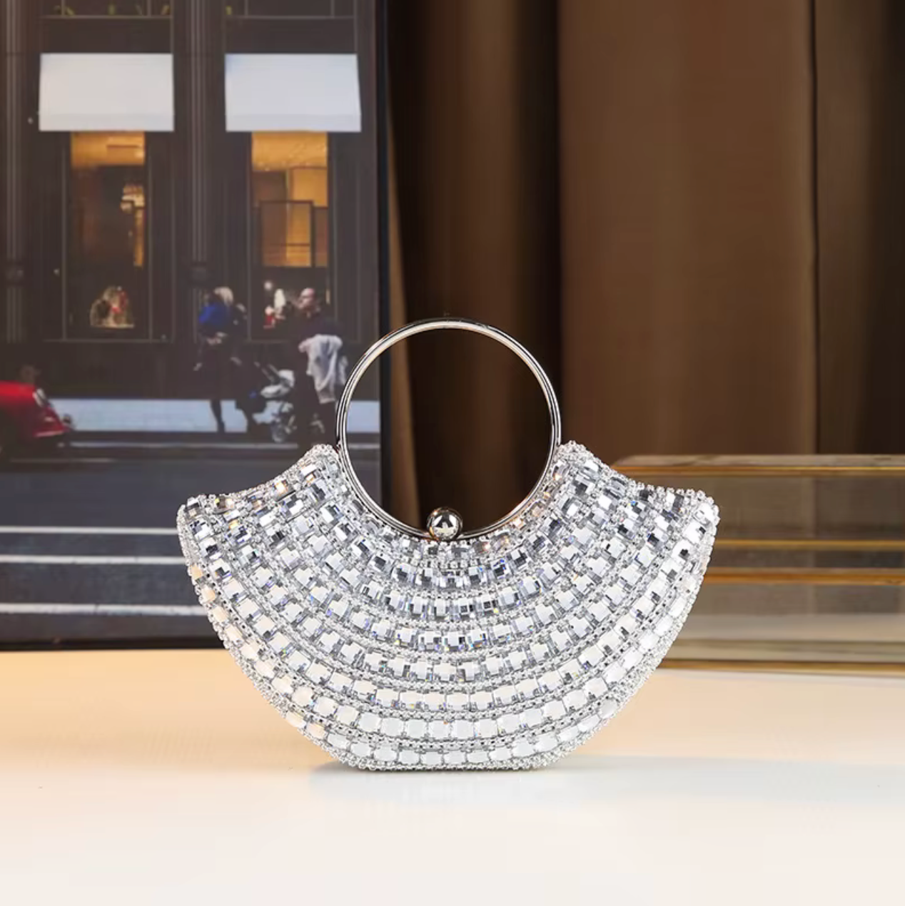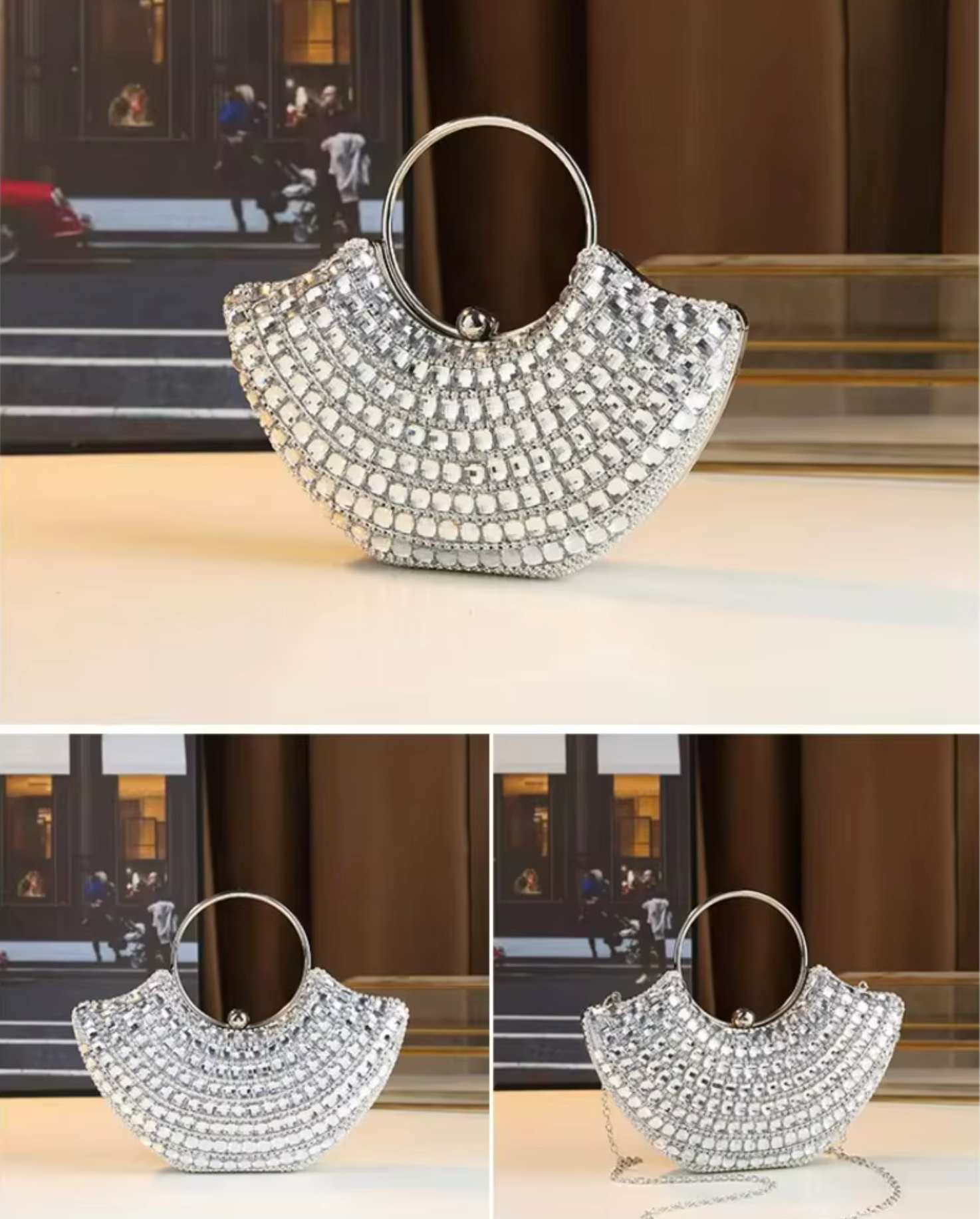 CHIC YET FUNCTIONAL: The size of the diamond purse is 9.8(L)*2.1(W)*8.1(H) Inch.Many glitter bags sacrifice space for looks, but ours balances glamour and utility. The structured interior fits a phone, lipstick, cards, and small essentials, with a slipproof lining to keep items secure. No more choosing between “pretty” and “practical”—this clutch delivers both.