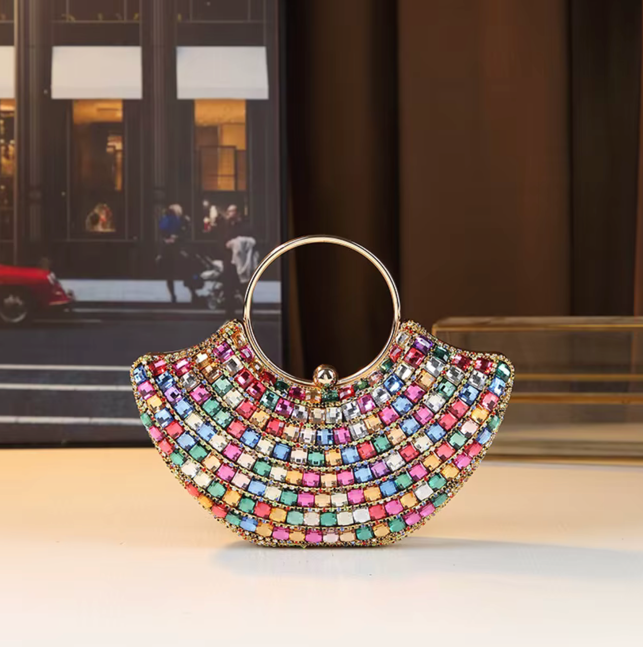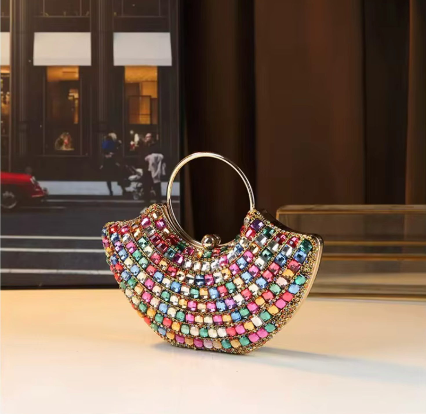 New Lucciz clutch purses for women features a multicolored rhinestone (emerald, sapphire, ruby hues) in geometric patterns. The vibrant color palette reflects light dynamically, makinging you stand out at weddings, proms, or cocktail parties—transforming the classic “sparkly bag” into a colorful statement piece.nestone Clutch Purses.